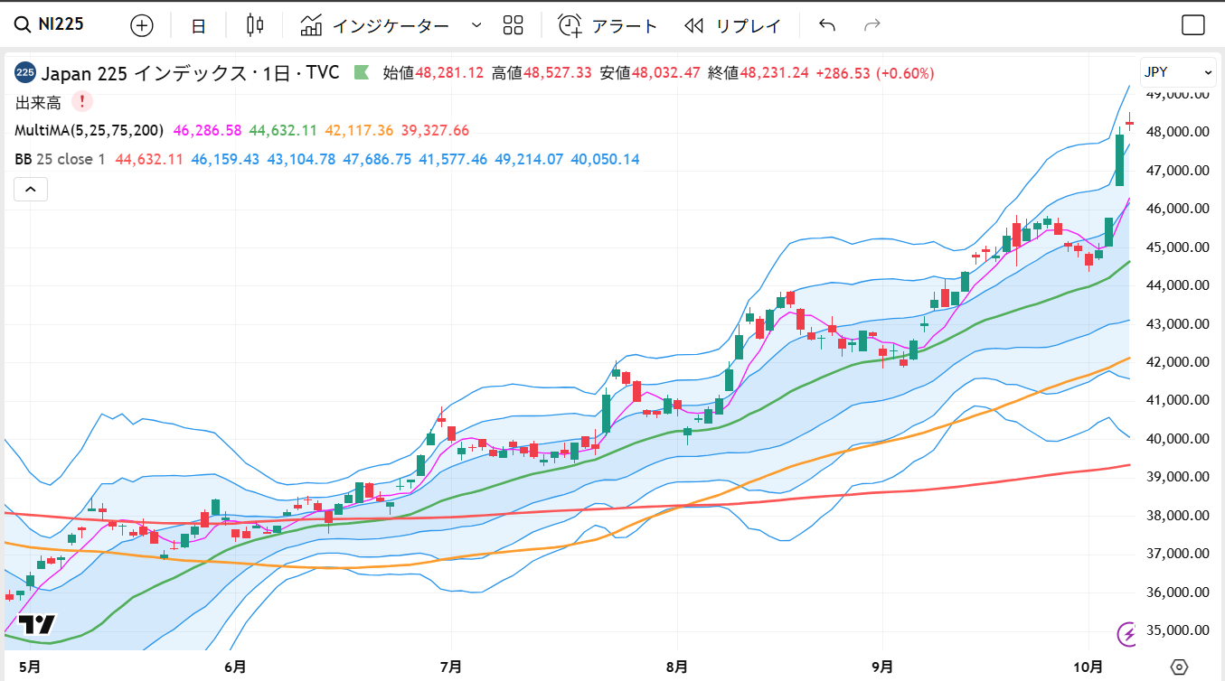 ただし、現状の相場は、総裁選後の政策期待による先回り買いが主導しています。この反応は一時的なもので、総裁選の結果そのものが劇的に相場を押し上げたわけではありません。市場は「結果」よりも「その後の政策運営」へ注目を移しています。今後、投資家は新政権の具体的な政策方針と実行力を見極めていく段階に入っていきます。
